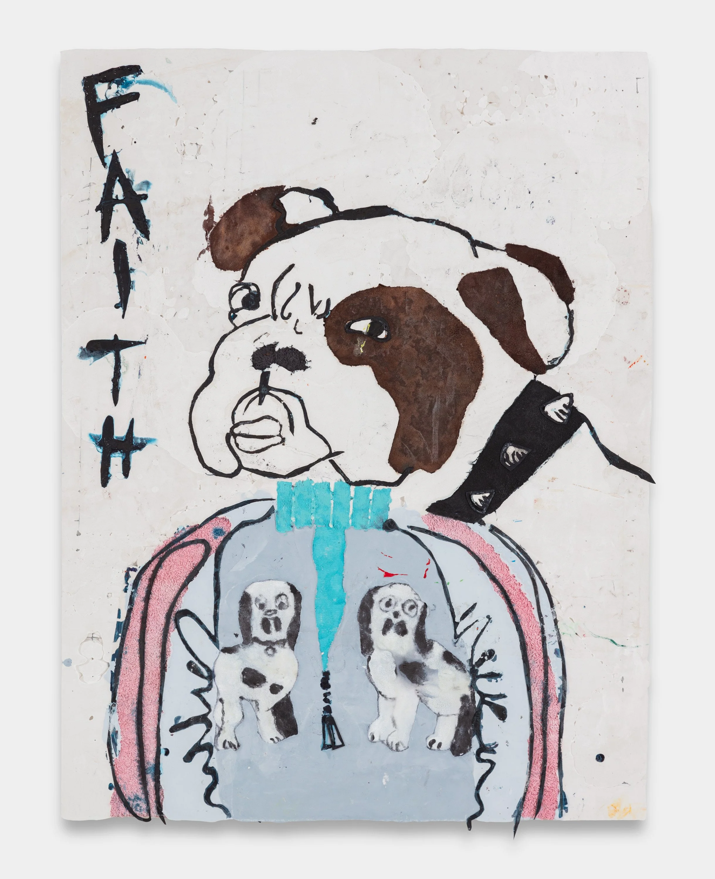 Erin Lee Jones, Faith, 2022, Hydrocal, fabric, acrylic, rubber, 26.5 x 20 x .75 in. (67.31 x 50.8 x 1.9 cm.)